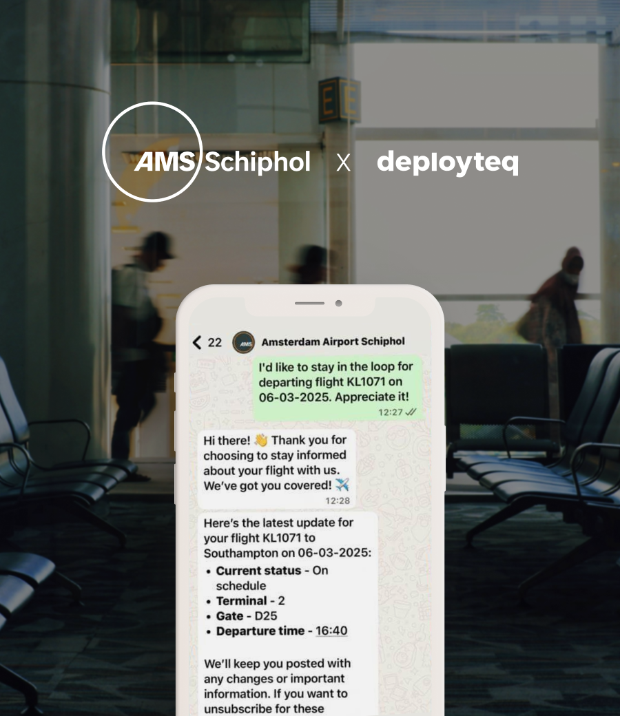 Deployteq, already a trusted partner for years, was choosen for its ability to orchestrate complex, real-time communications at scale. Together, Schiphol and Deployteq built a solution that integrated seamlessly with the airport’s ecosystem of APIs and data sources.