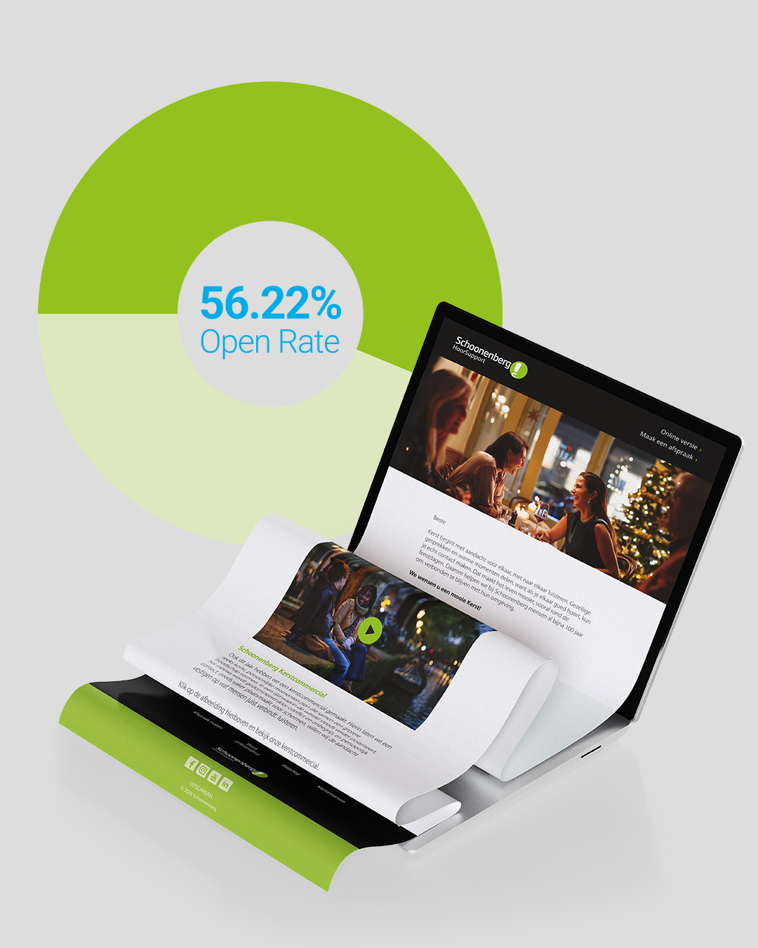 Schoonenberg clients would receive a holiday newsletter with direct access to a dedicated campaign landing page. Upon entering the landing page, customers would be greeted by a Christmas message from the Schoonenberg team, “Schoonenberg wishes you a Merry Christmas” and a simple CTA inviting them to “Keep listening to each other”.